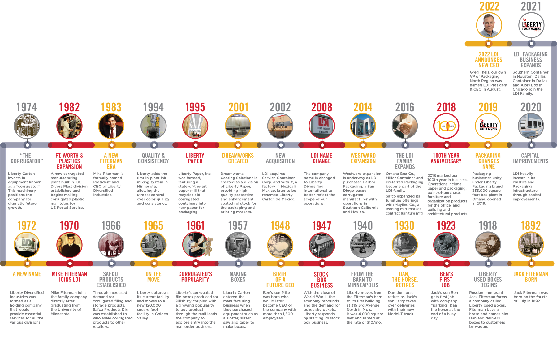 In 1918, our founder, Jack Fiterman, was so grateful for the opportunity in this country, he named his new business after one of the country’s founding principles: liberty. Liberty Diversified International has grown from a small family business to a growing family of companies. Today we employ nearly 2,000 employees in eighteen facilities in ten states and Mexico.